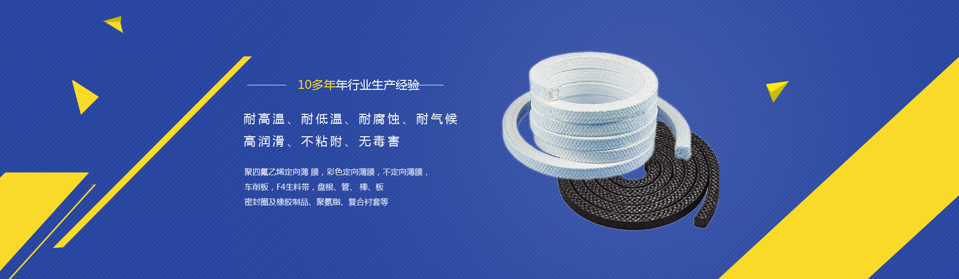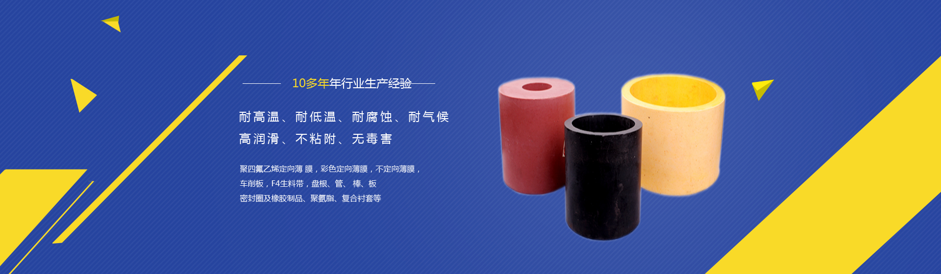我公司引進新配方,替代進口件國產化,是生產聚四氟 乙烯制品、尼龍制品的專業廠家。主要產品有:聚四氟乙烯定向薄 膜,彩色定向薄膜,不定向薄膜,車削板,F4生料帶,盤根、管、 棒、板 密封圈及橡膠制品、聚氨脂、復合襯套等。我公司產品質量 優良、價格合理,深受新老用戶的青睞,產品遠銷國內外。